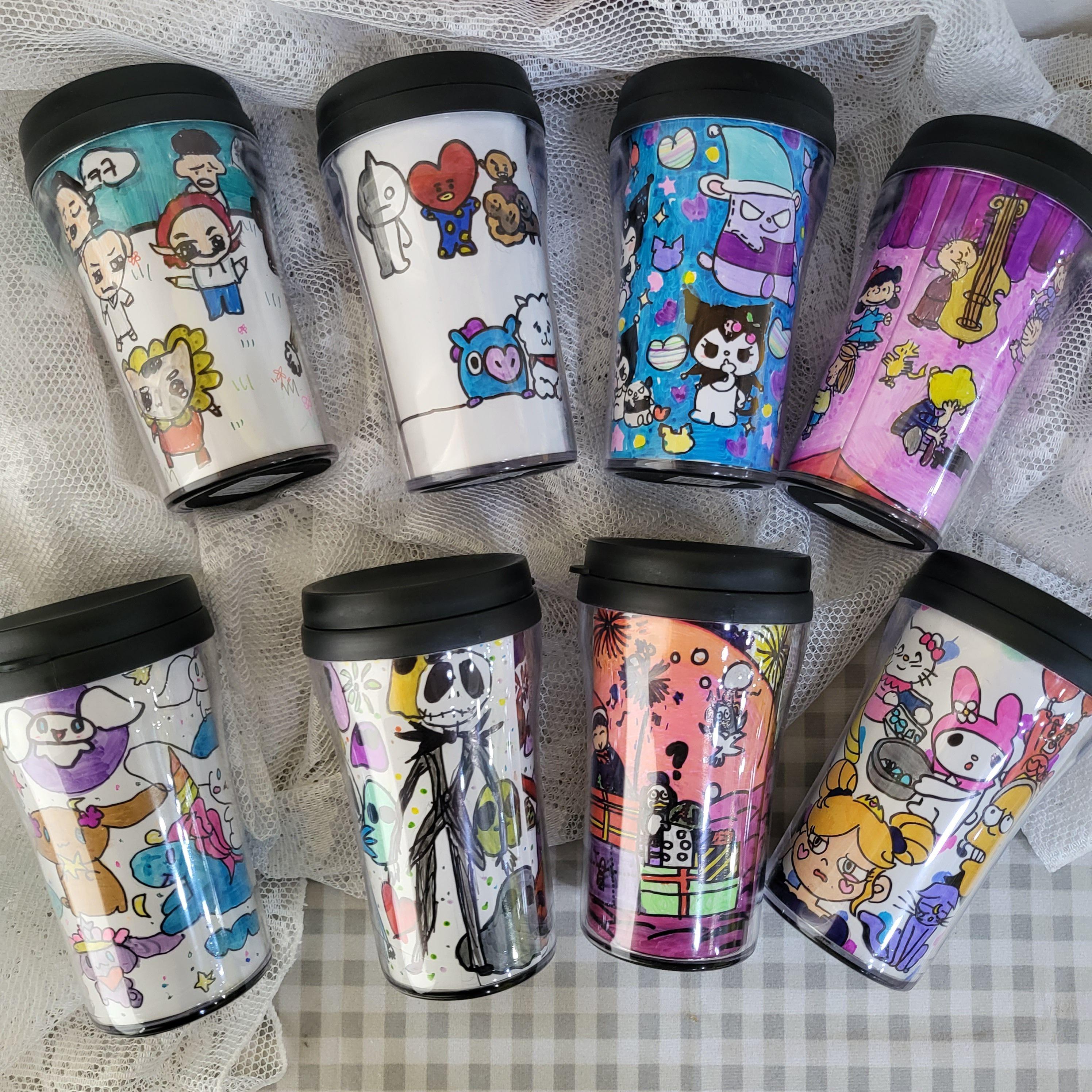 휴대용 미니 텀블러는 반제품이예요. 미술 재료 사이트에서 여러 개 구매를 하였답니다. 구매 사이트가 궁금하신 분들은 댓글에 남겨주시면 됩니다. 텀블러는 플라스틱 재질이고, 안쪽 통과 바깥쪽 통이 분리가 되는데 그 사이에 그리기용 종이가 들어 있습니다. 저희는 그 종이에 그리고 싶은 그림을 그렸어요